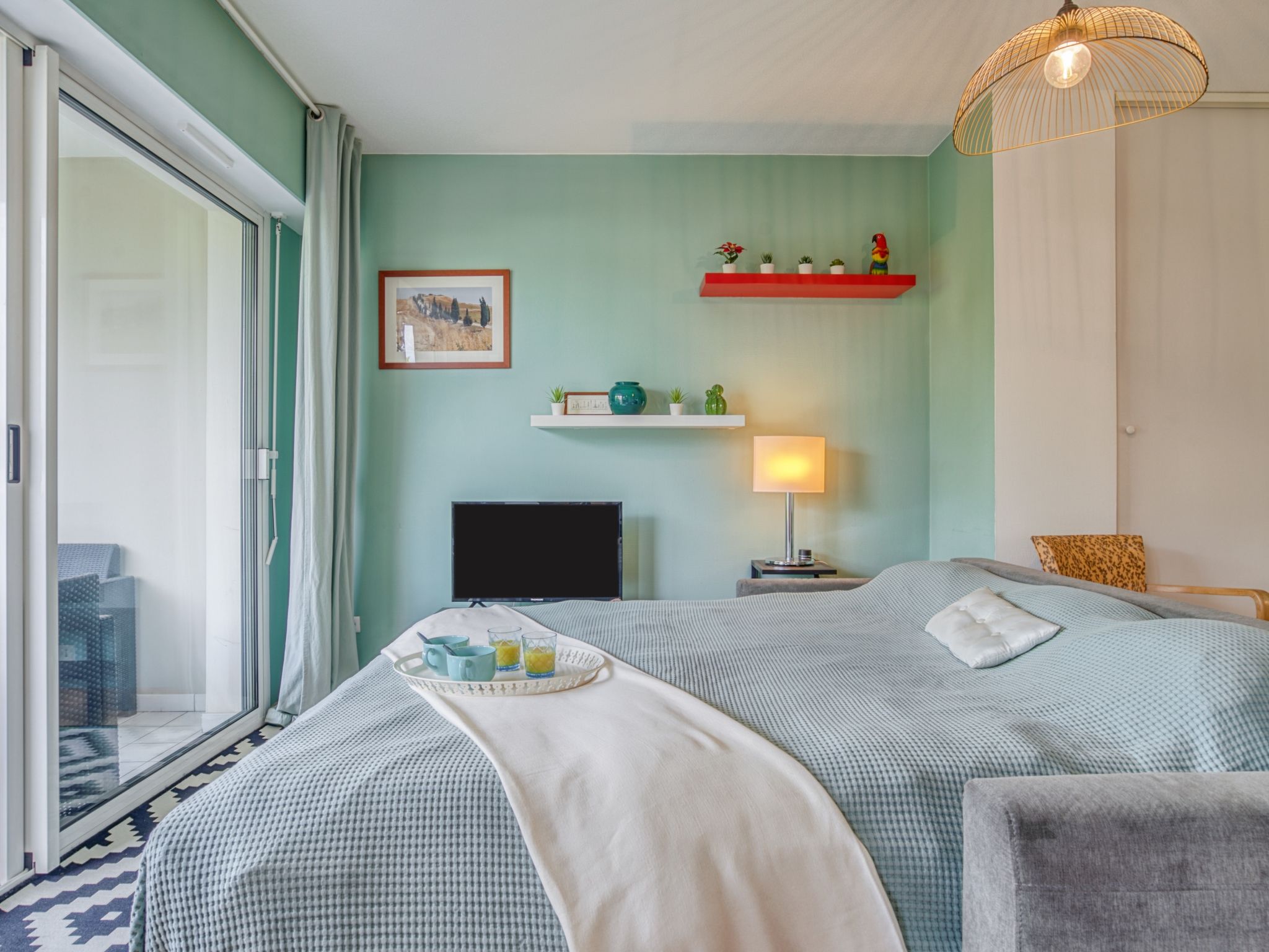 1-Zimmer-Studio 30 m2 im 2. Stock. Komfortabel und modern eingerichtet: Wohn-/Esszimmer mit 1 Doppeldiwanbett (160 cm, Länge 190 cm), TV (Flachbildschirm). Ausgang zur Terrasse. Kochnische (2 Induktionskochplatten, Toaster, Wasserkocher, elektrische Kaffeemaschine, Kapseln für die Kaffeemaschine (Nespresso) extra, Kombinationsmikrowelle). Bad/Dusche/WC. E-Heizung. Terrasse 10 m2, Ostlage. Balkonmöbel. Zur Verfügung: Waschmaschine, Bügeleisen, Haartrockner. Internet (Wireless LAN, gratis). Bitte beachten: Rauchmelder. 640240014174B
