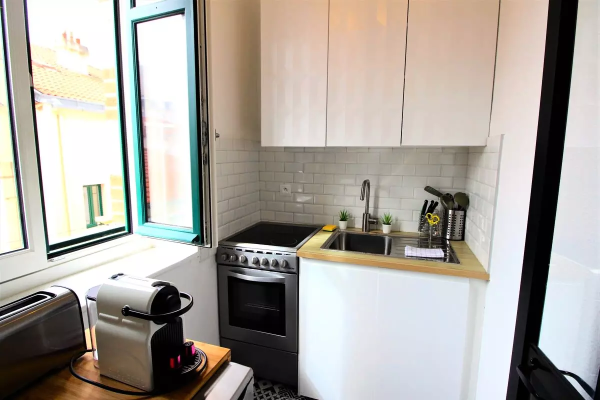 Die voll ausgestattete Küche (Kühlschrank, Kochplatten, kleiner Geschirrspüler, Nespresso-Maschine, Wasserkocher) ist kompakt, aber gut durchdacht.